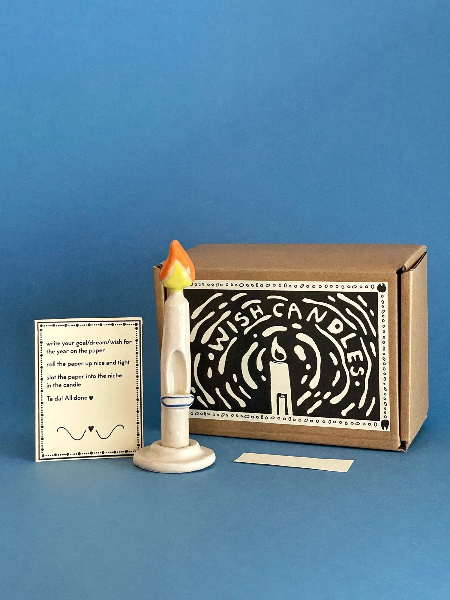 Each candle comes with a little instruction card and a small paper to write your wish/dream/goal/hopes for the future which you can slot into the candle niche.